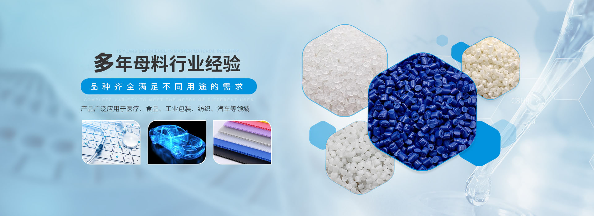 秉承開拓創(chuàng)新的經(jīng)營宗旨,研發(fā)技術(shù)人員具有從事高分子塑膠行業(yè)十多年以上的實踐工作經(jīng)驗,可根據(jù)客戶需求,訂做各種塑膠載體色母??蛇m用于注塑、吹膜、片材、管材、吹塑、流延、纖維、拉絲、板材、無紡布、擠出鉀出等各種成型工藝要求,可訂做阻燃V0,抗靜電,激光鐳雕,光擴散···
